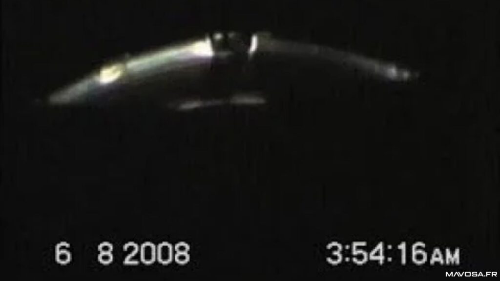 Dans plusieurs plans zoomés, un hublot ou une ouverture supérieure révèle des silhouettes humanoïdes distinctes, comme assises dans un cockpit. Le 15 mai 2009, entre 4 h 59 et 5 h 32, la caméra capte un objet métallique qui mute progressivement en quatre lumières orange. Le 12 juin 2008 à 2 h 19, puis à 3 h 44, un dôme discoïde montre des variations d’ombre et de lumière. Le 10 août 2007 à 4 h 20, une réflexion latérale ne correspond pas à la position de la lune, alors en phase nouvelle.